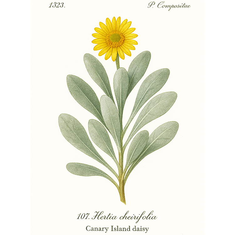 En été, elle s’orne de petites fleurs jaunes en capitules, rappelant des marguerites miniatures, qui contrastent vivement avec le feuillage. Ces floraisons lumineuses apportent une note vive et ensoleillée, attirant les pollinisateurs et dynamisant les massifs ou rocailles. Peu exigeante, l’Othonna cheirifolia demande un sol très drainé, pauvre et plutôt caillouteux, et elle supporte parfaitement la sécheresse une fois installée.